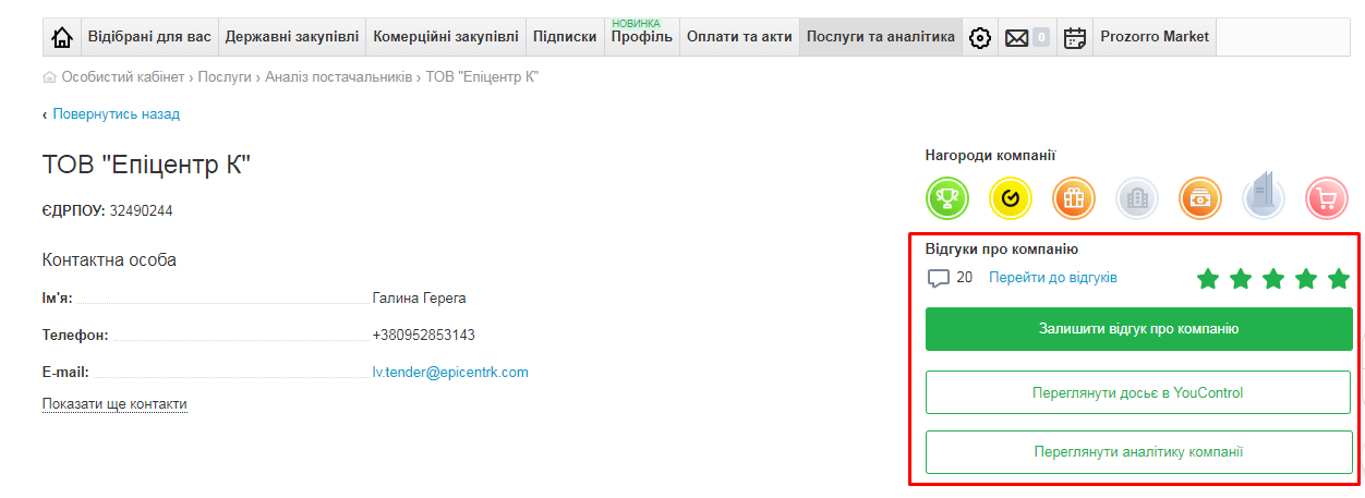 Сподіваємося, що інформація у розділі “Аналіз постачальників” допоможе вам у прийнятті рішень. Бажаємо успішної участі у закупівлях на майданчику Zakupivli.Pro!