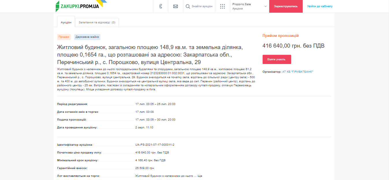 Наприклад, ось так виглядає сторінка лоту на майданчику Аукціони.Prom: