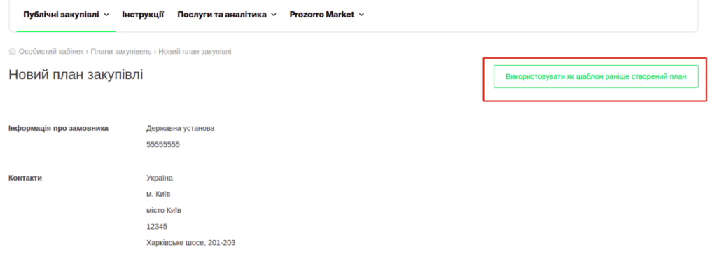 Якщо минулого року ви вже закуповували електричну енергію і відповідно публікували план, то в цьому році можна використати шаблон такого плану, актуалізувати дані щодо очікуваної вартості, року річного плану і опублікувати даний план в системі.