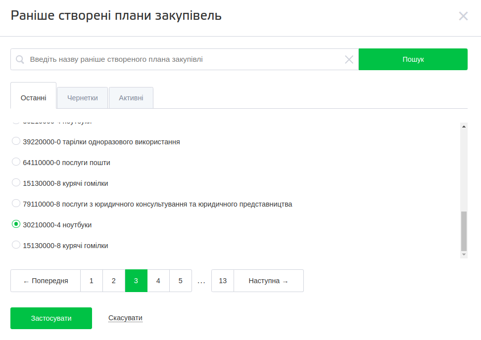 Крім того, можна буде відфільтрувати плани за кодом ДК 021:2015 та датою проведення. Або використати пошук за назвою чи ідентифікатором плану.
