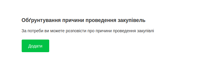 Якщо план вже опублікований в системі, то при переході до нього можна побачити функціонал обґрунтування проведення закупівлі. Він необхідний тоді, коли закупівля викликала суспільний резонанс і вам, як замовнику необхідно пояснити причини проведення такої закупівлі. Законодавчо цей функціонал не передбачений, але технічно (для зручності замовників) реалізований в системі.