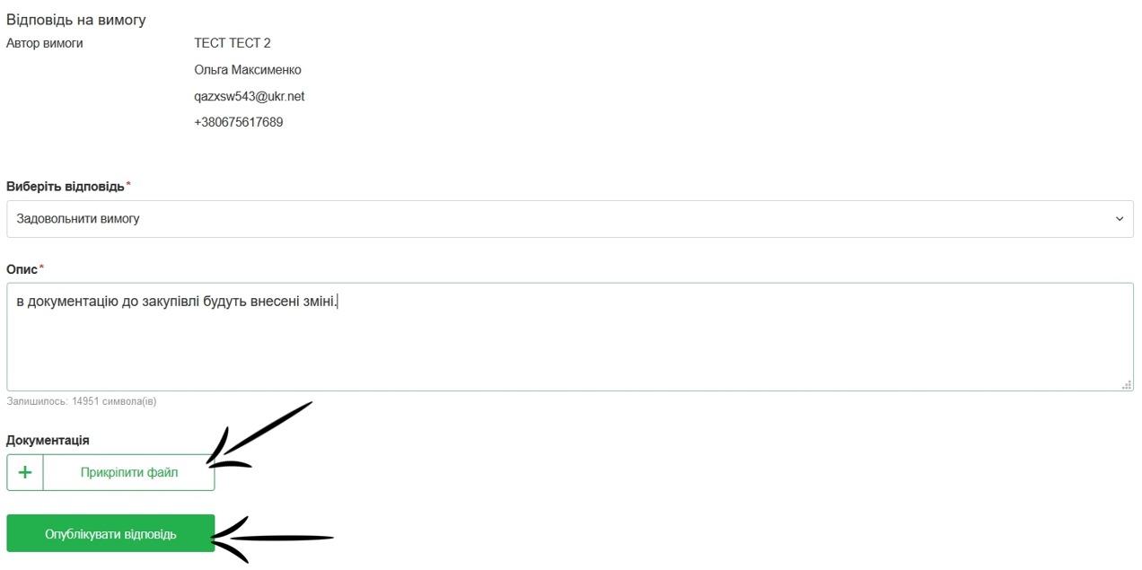 - в полі «Опис» вкажіть відповідь на вимогу;