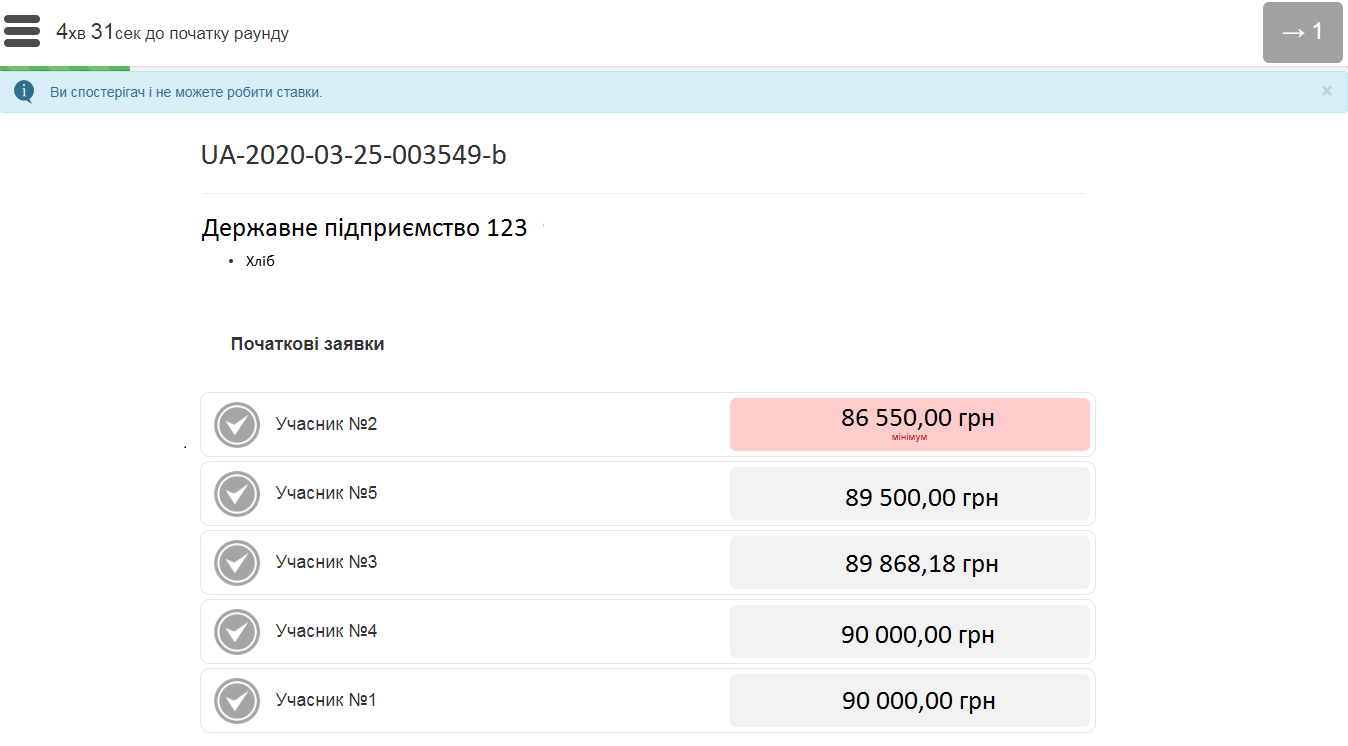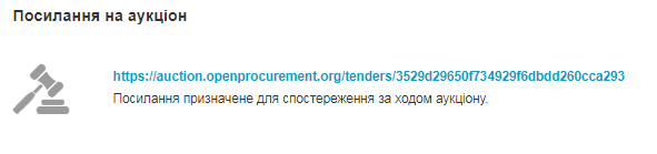Замовник та інші учасники системи, які не приймають участь в закупівлі можуть спостерігати за перебігом електронного аукціону в онлайн режимі. Для цього необхідно перейти за посиланням.