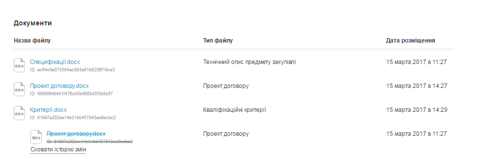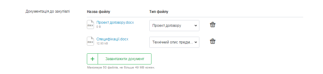 Важливо! Документи, що були завантажені під час оголошення процедури закупівлі не підлягають видаленню. Зміни вносяться шляхом завантаження нової редакції документу.