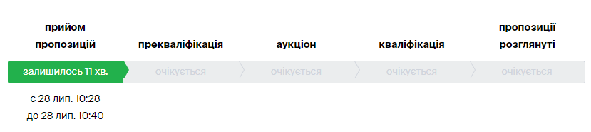 Після аукціону тендер переходить до етапу кваліфікації пропозиції. На цьому етапі замовник розглядає цінові пропозиції, починаючи з найменшої.