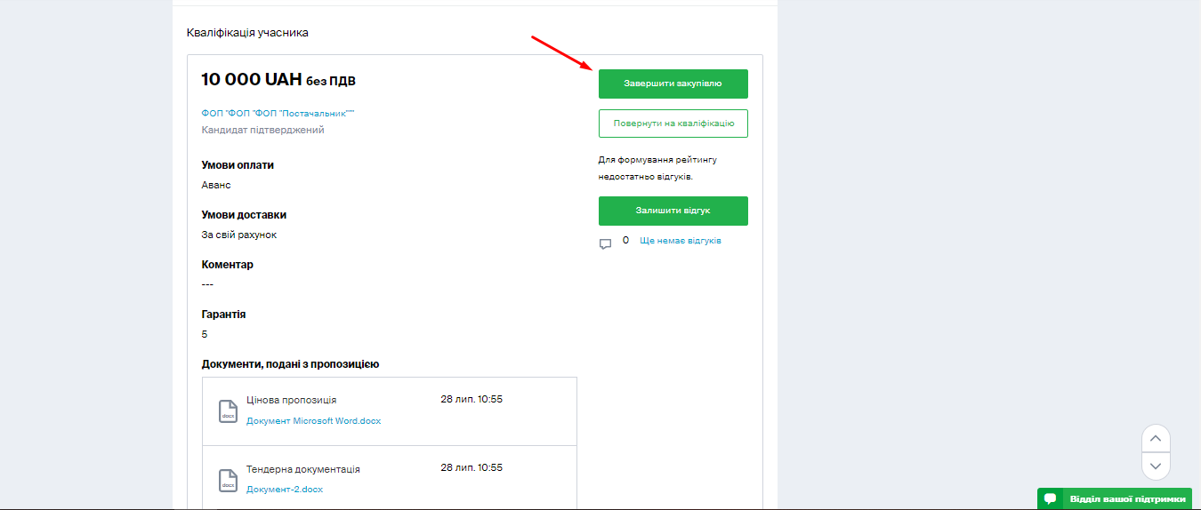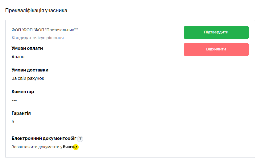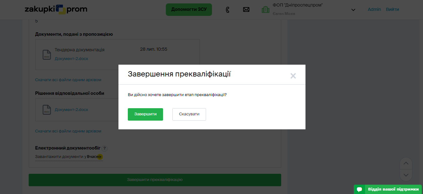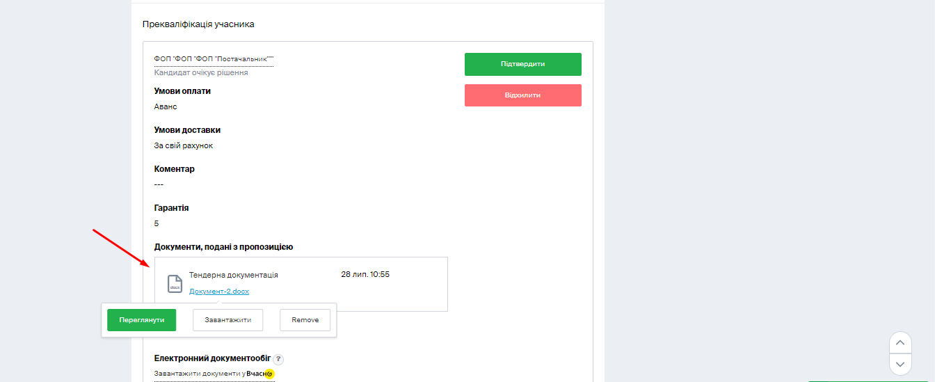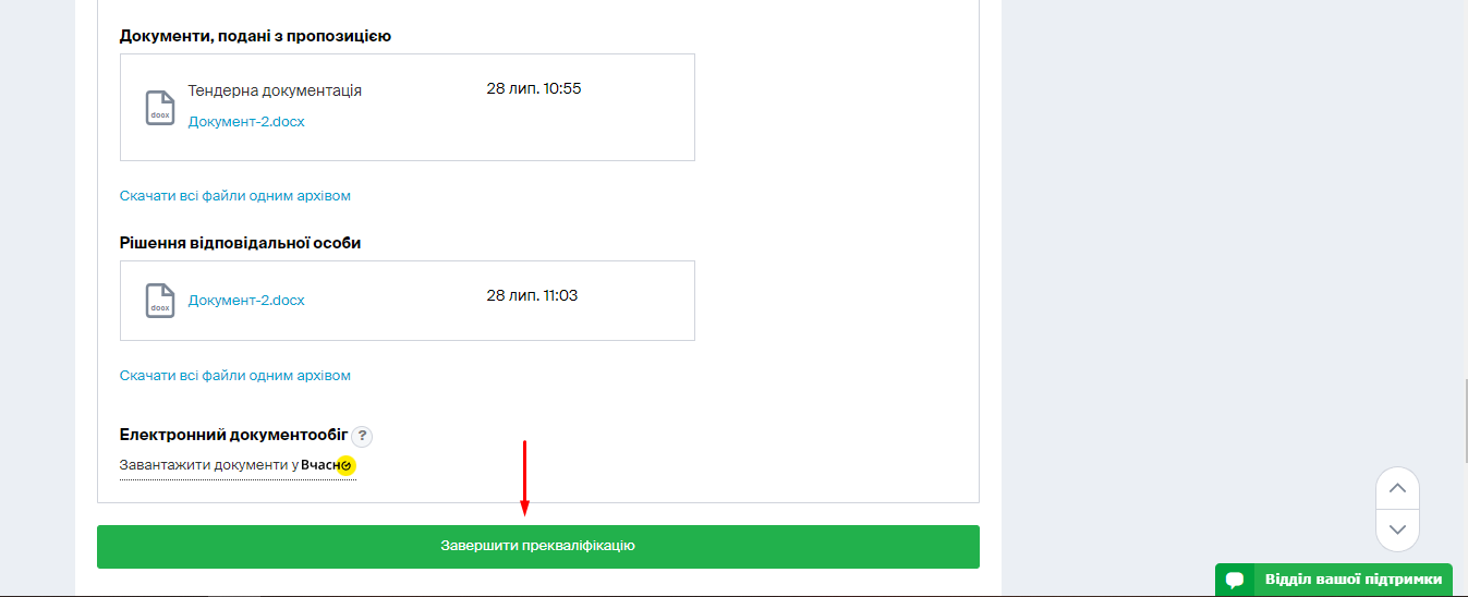 Зверніть увагу: якщо постачальник завантажить технічні або кваліфікаційні документи з типом файлу “Цінова пропозиція”, на етапі прекваліфікації замовник їх не побачить.