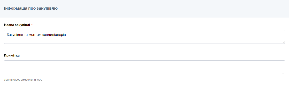 Внесіть інформацію про закупівлю: