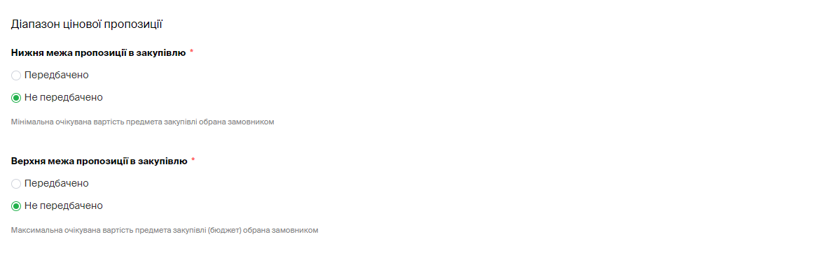 • за необхідності вкажіть нижню та верхню межу пропозиції до закупівлі