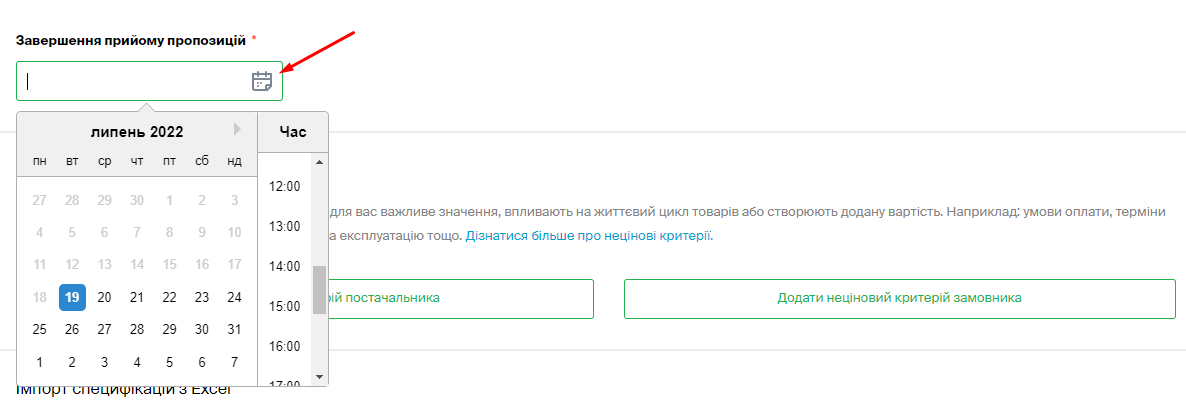 • вкажіть дату та час завершення прийому пропозицій