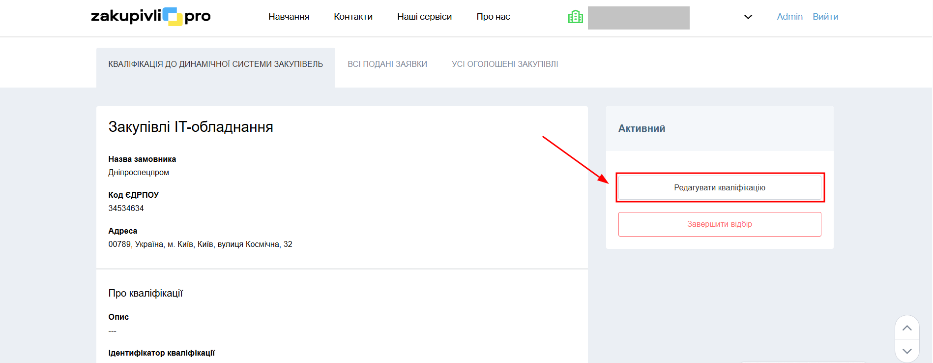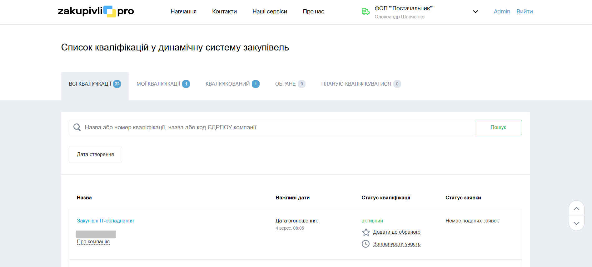 Після цього активна кваліфікація буде також відображатись в кабінеті постачальника на майданчику Zakupivli.Pro.