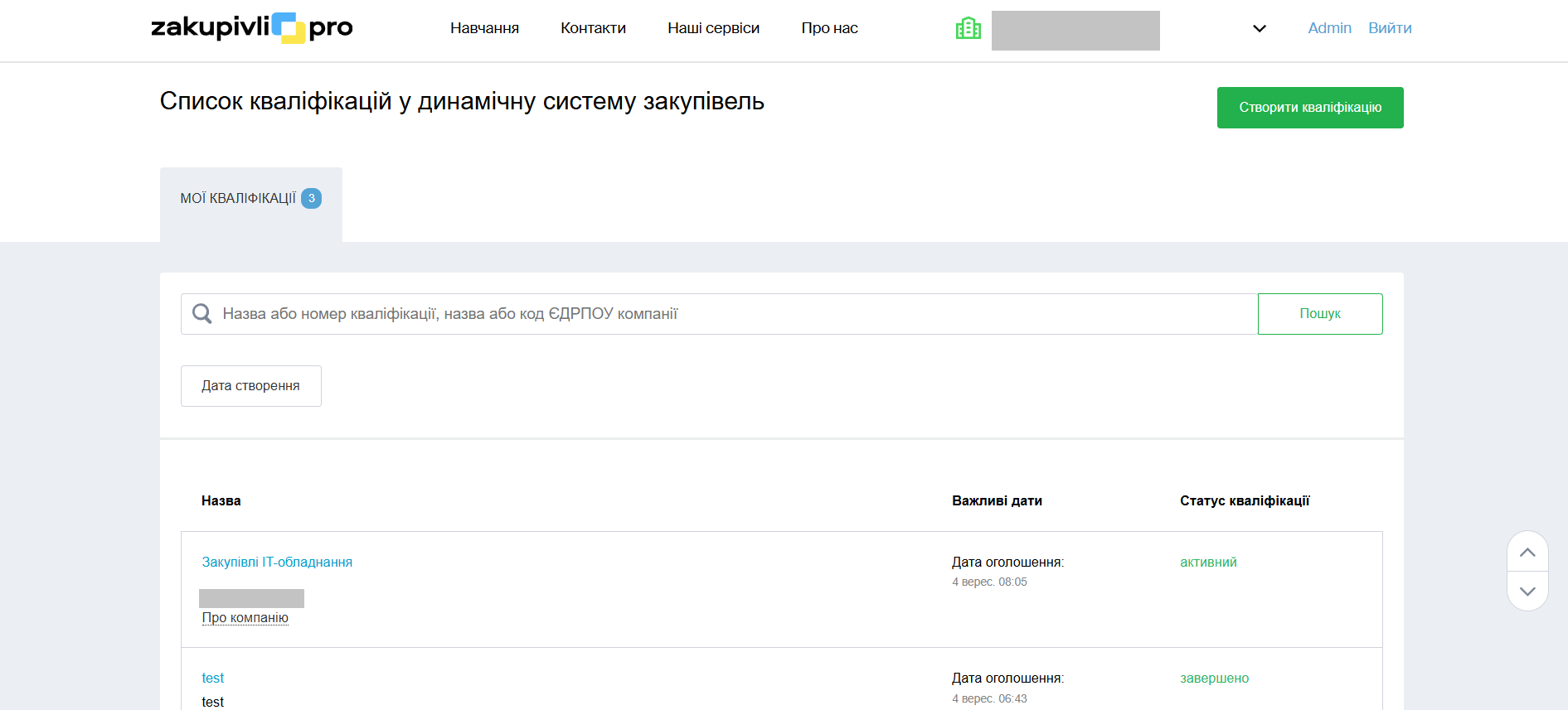 Ви можете створити декілька кваліфікацій. Усі вони будуть відображатись на сторінці Список кваліфікацій у динамічну систему закупівель.