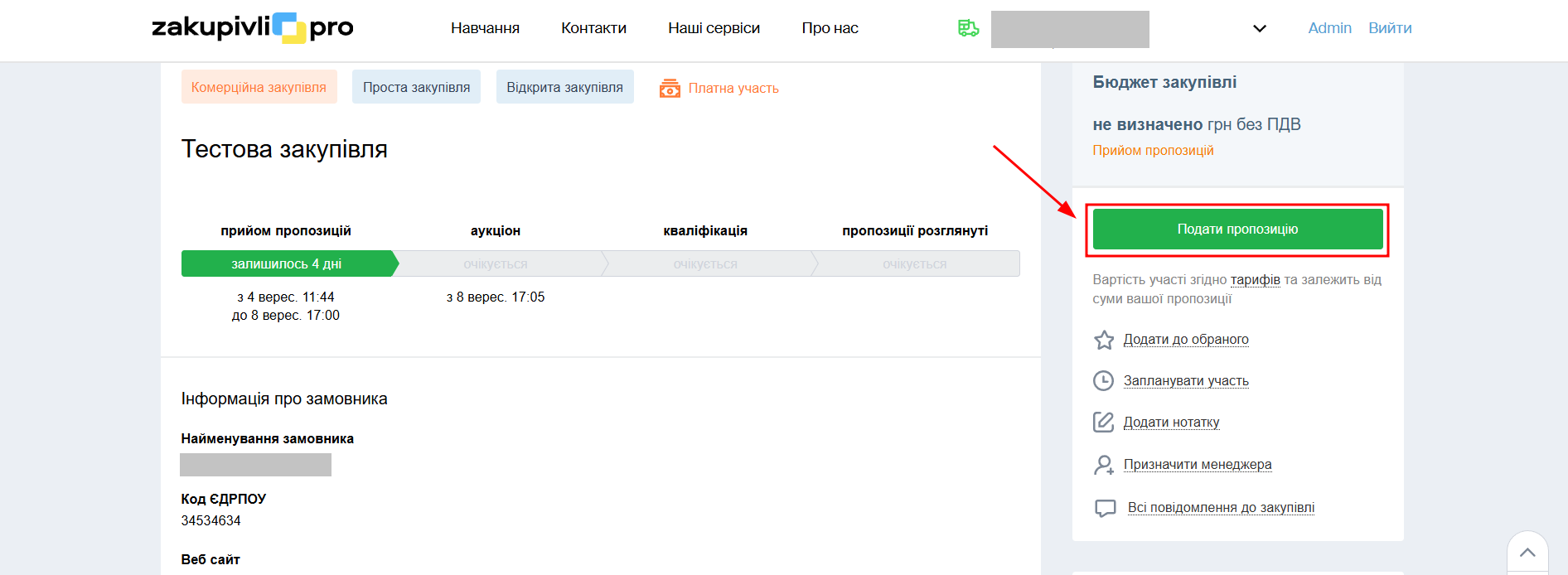 Після публікації закупівлі, постачальники, які кваліфіковані у цей відбір, зможуть подати свою пропозицію.