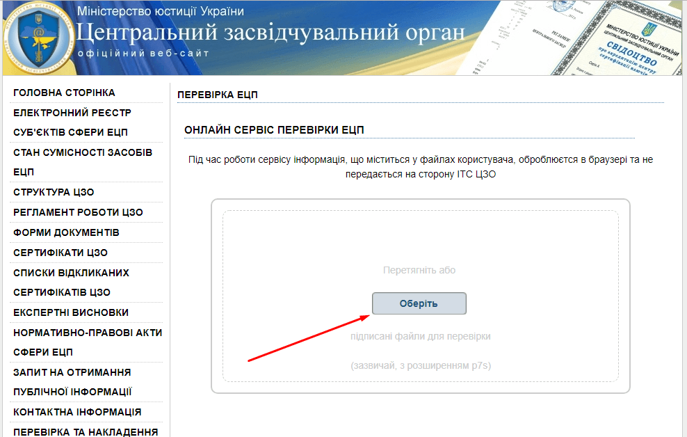 Перейдіть на сайт Центрального засвідчувального органу для перевірки ЕЦП.
