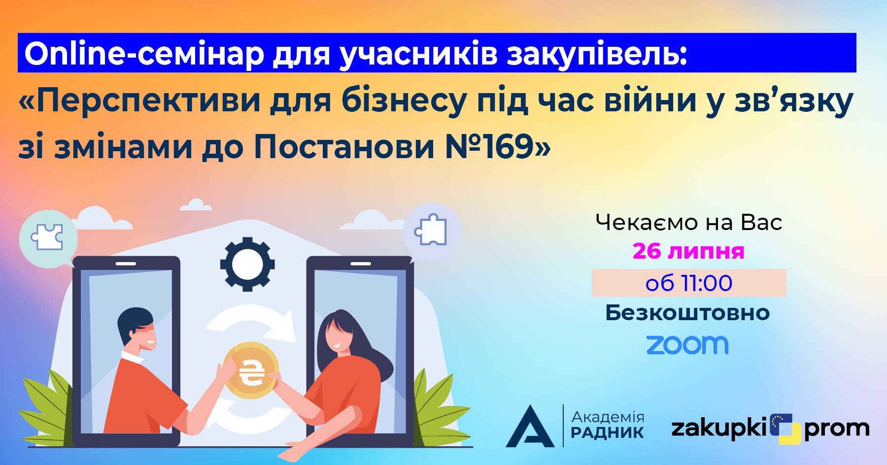 Закупівлі повернулись! І з ними повернулись нові можливості та перспективи для бізнесу. Для того, що б розібратись з тим, як саме зміни до Постанови №169 вплинули на учасників, запрошуємо вас на безкоштовний online-семінар.