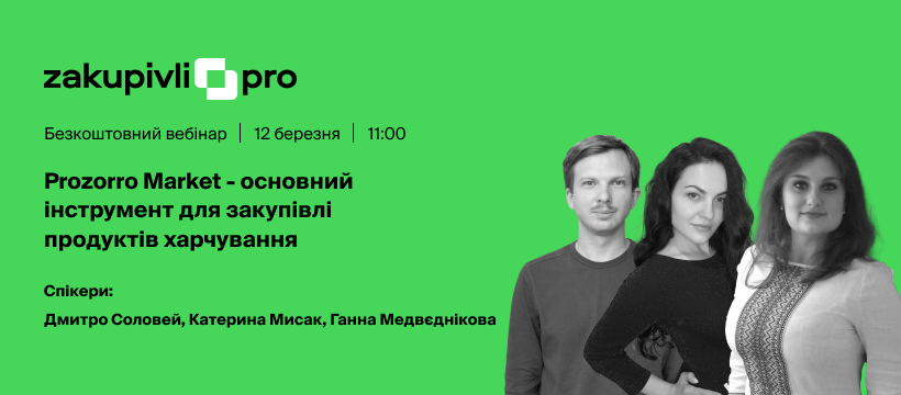 Запрошуємо на безкоштовний вебінар “Prozorro Market – основний інструмент для закупівлі продуктів харчування”, що відбудеться 12 березня об 11:00
