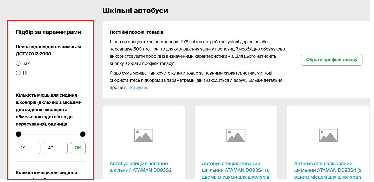 Детально про підбір за параметрами в  Prozorro Market тут.
