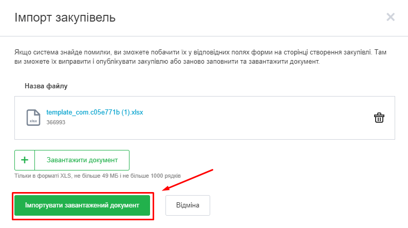 6. Далі натисніть “Імпортувати завантажений документ”.