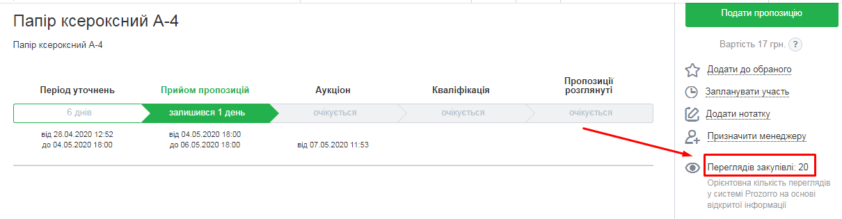 Наприклад, в одній закупівлі паперу 20 переглядів: