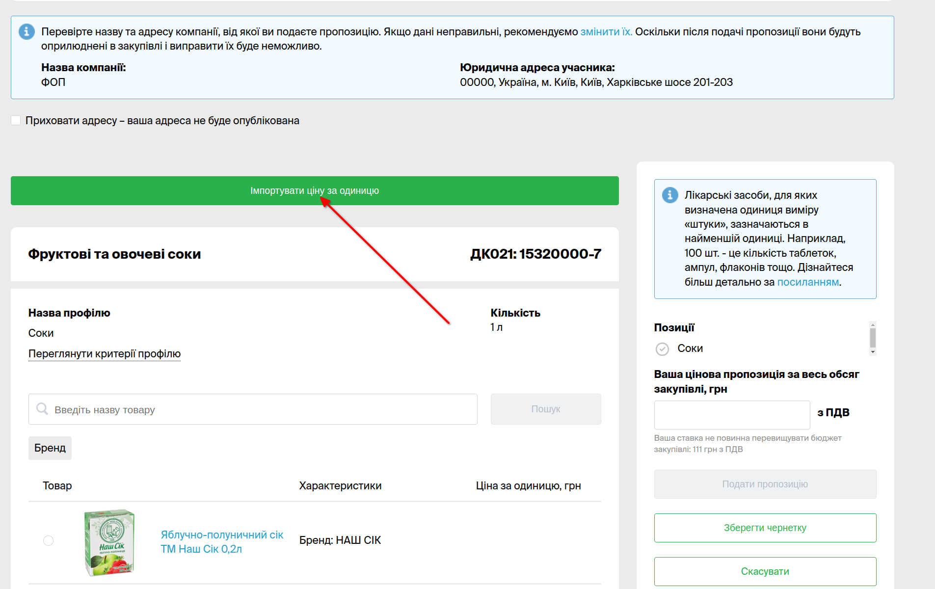 Для зручності в роботі у нас є автоматизоване рішення – імпорт ціни за одиницю на сторінці подачі пропозиції в ЗЦП.