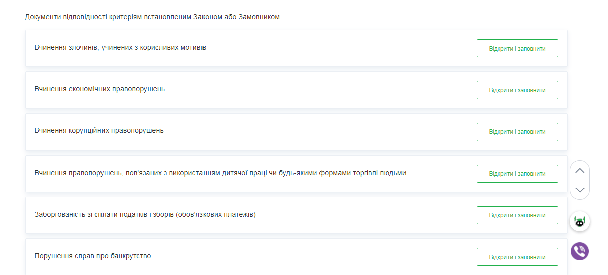 Підтвердіть відповідність критеріям у розділі “Документи відповідности критеріям встановленим Законом або Замовником”. Читайте більше детально, як це зробити, у цій інструкції.