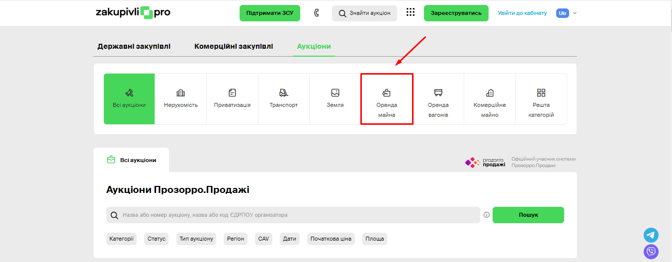 Давайте для прикладу виберемо Оренду майна (вона включає Оренду державного та комунального майна згідно ЗУ, Оренду майна за регламентом та Комерційну оренду).