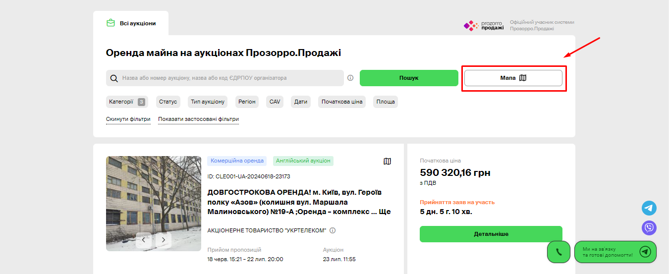 - На мапі відображаються лише ті аукціони, в які можна подати пропозицію