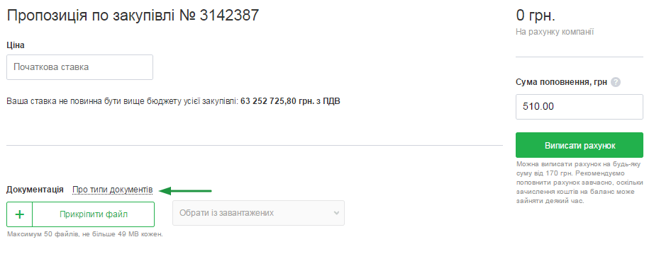 Не витрачайте час, завантажуйте документи, які ви часто використовуєте для участі у закупівлях в розділ профіля компанії – Документи для участі в закупівлях. Наступного разу, подаючи пропозицію в закупівлю, просто оберіть їх із завантажених.
