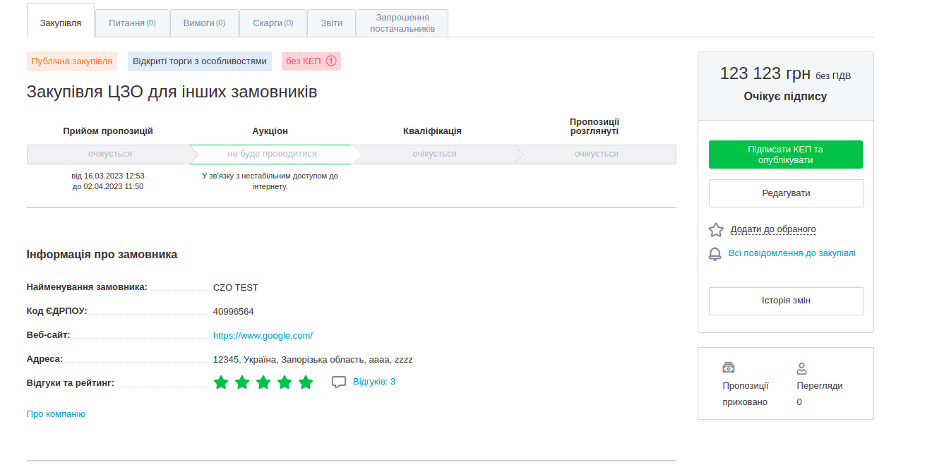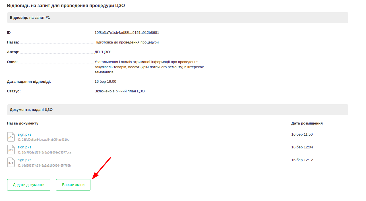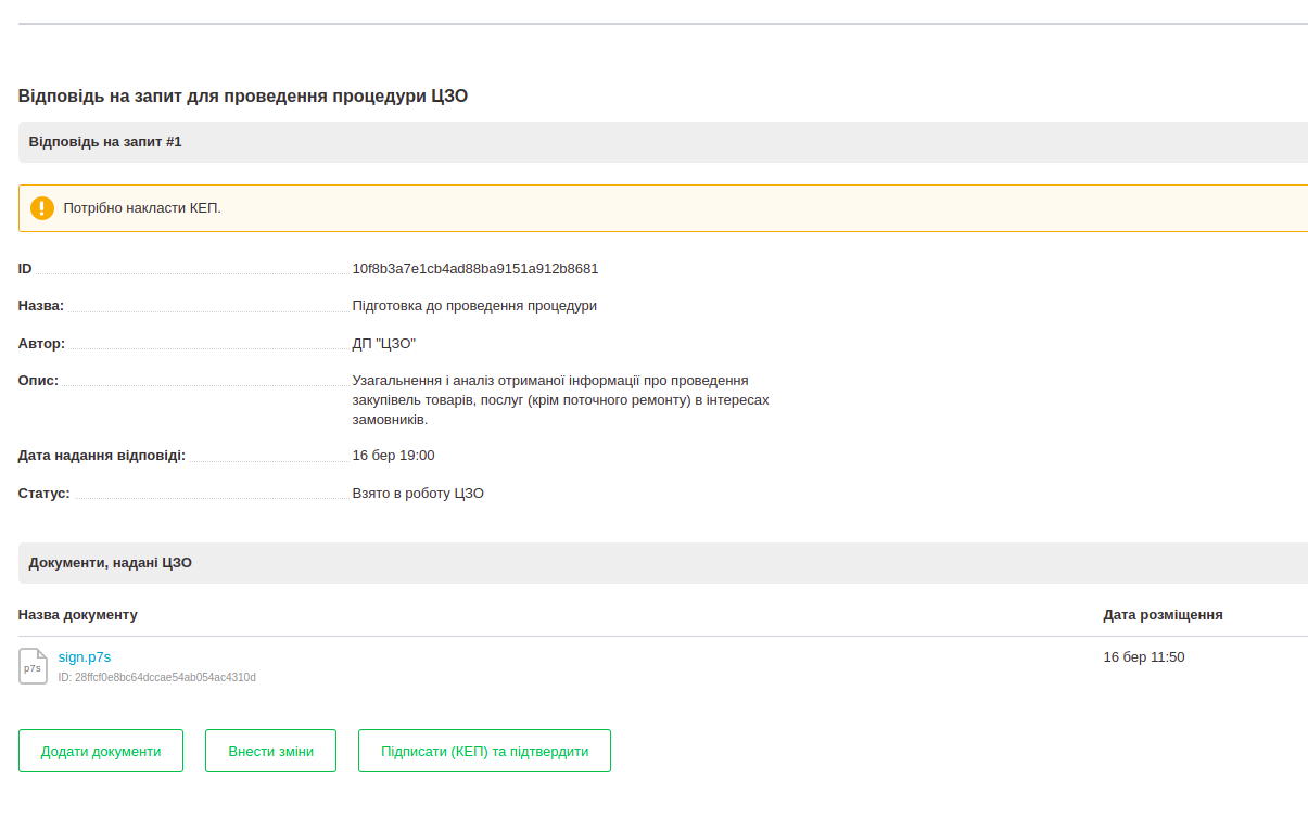5. Після публікації інформації у додатковому вікні, можна опціонально додати документи або внести зміни в попередні дані.