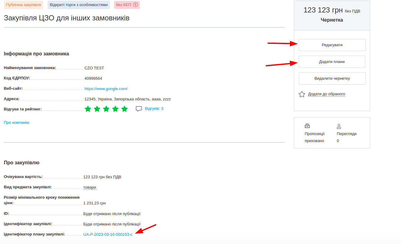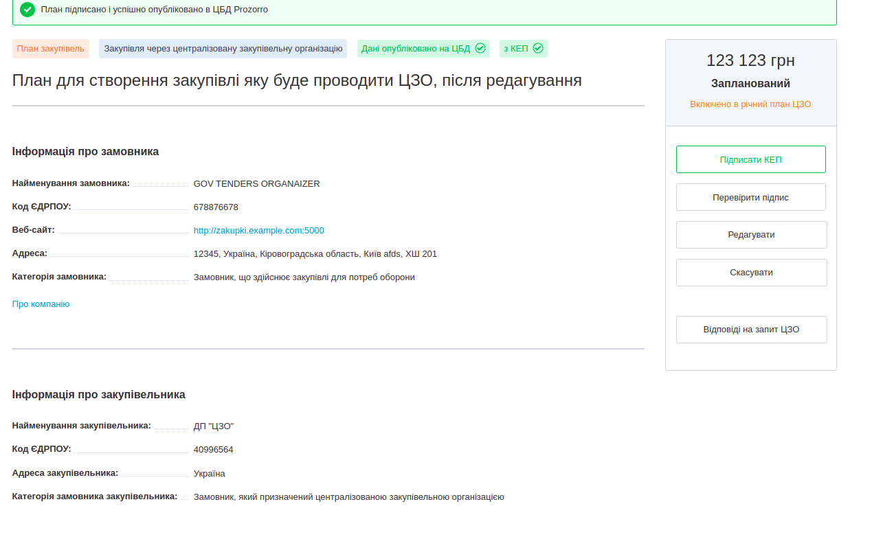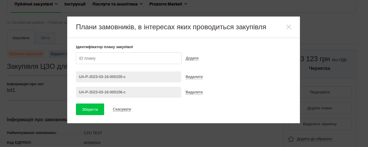 19. Після того як додали плани їх можна буде побачити на формі закупівлі. Закупівлю все ще можна редагувати. Плани теж можна змінювати.