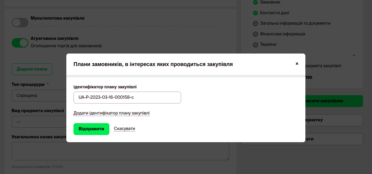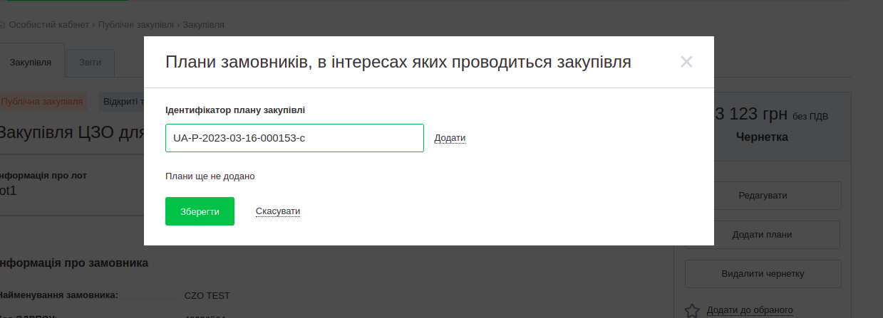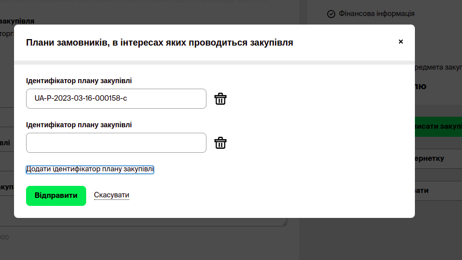 В поле вписуємо номер плану та натискаємо “Додати ідентифікатор плану закупівлі”.