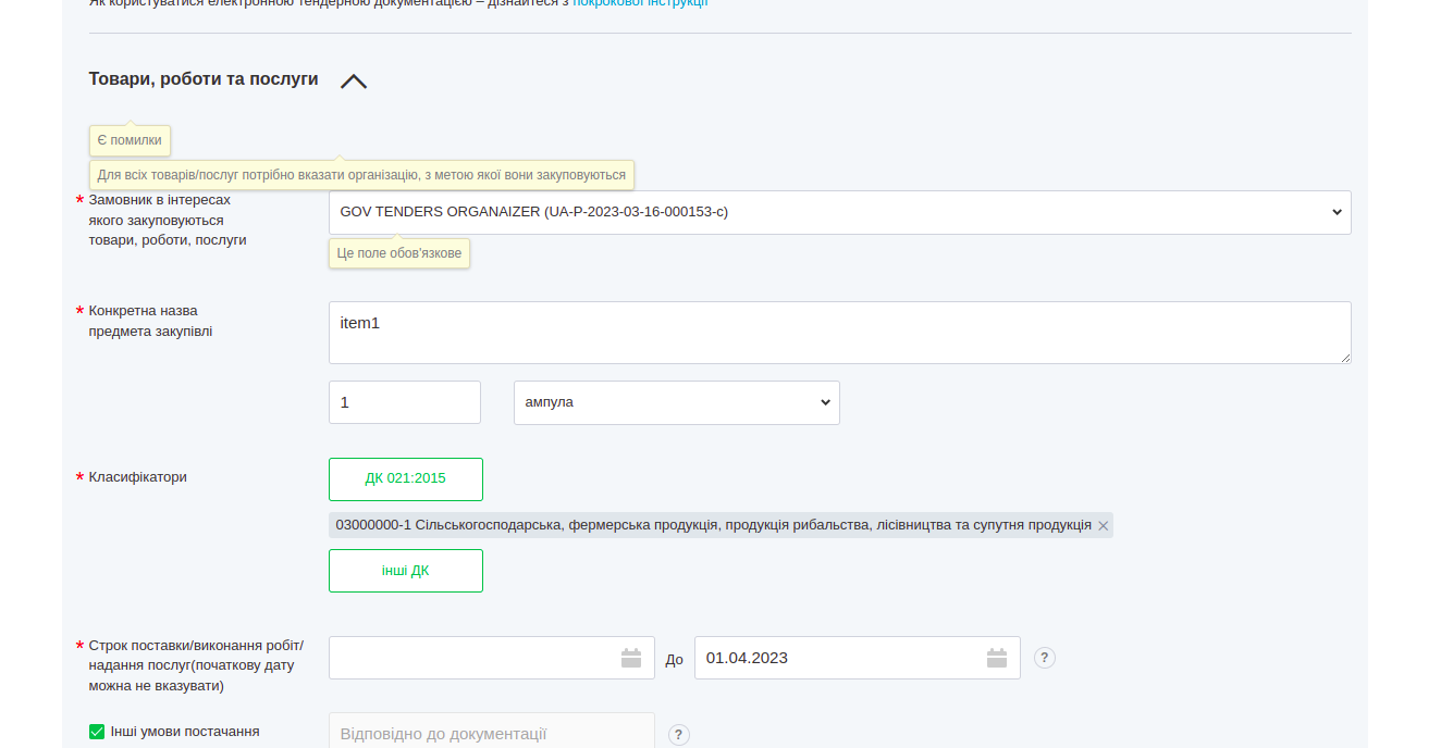 Увага! Відмінність закупівель ЦЗО в тому, що для кожного товару/послуги треба обрати замовника для якого цей товар/послуга буде закуповуватись. Така можливість зʼявляється тоді, коли вже прикріплені плани.