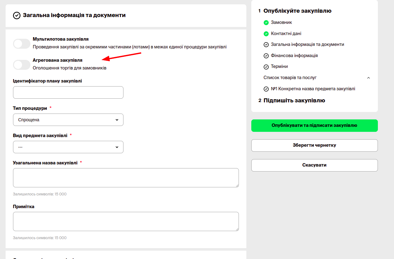 На формі створення закупівель ЦЗО, зʼявилася опція “Агрегована закупівля”.