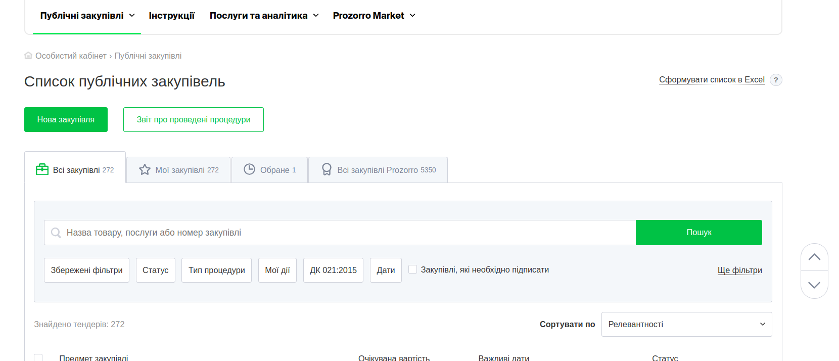 2. Натисніть кнопку “Нова закупівля”.