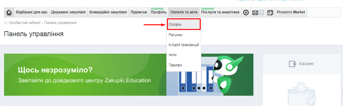 З цієї статті ви дізнаєтесь, як здійснити першу та наступні оплати, де переглянути рахунок, вартість тарифів та особливості участі у безкоштовних комерційних закупівлях та за типом “Запит цінових пропозицій”.