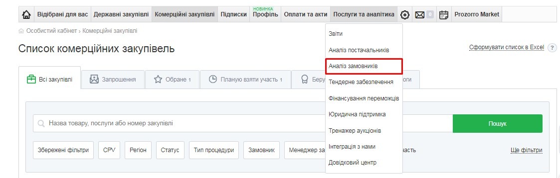 Для цього перейдіть у розділ “Послуги та аналітика” – Аналітика замовників”.