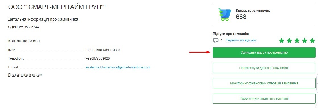 Відгуки. Майданчик Zakupki.Prom надає ексклюзивну можливість своїм активованим користувачам залишити відгук про контрагента.