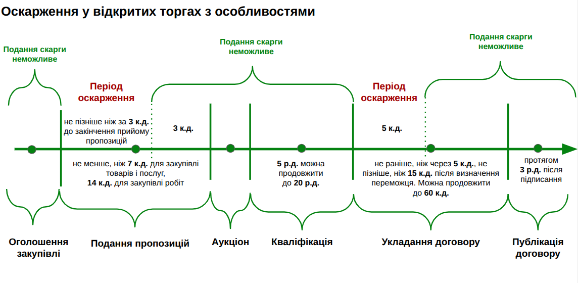 По-друге, оскарження закупівлі (ми говоримо про ВТО) може відбуватися на різних етапах. Детально про це зазначено на схемі.