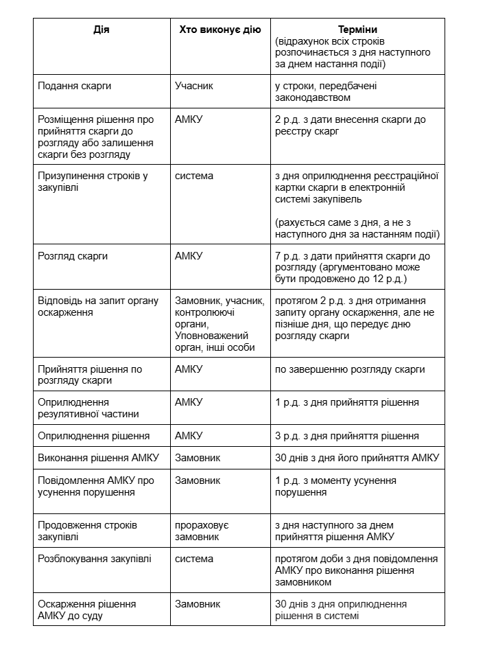 Детальний алгоритм розгляду скарги описано в таблиці.