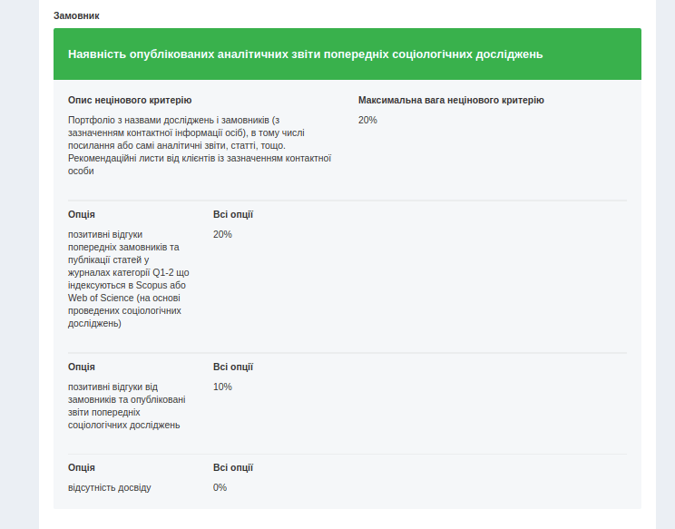Цей вид нецінового критерію можливий тільки в двоетапній закупівлі.