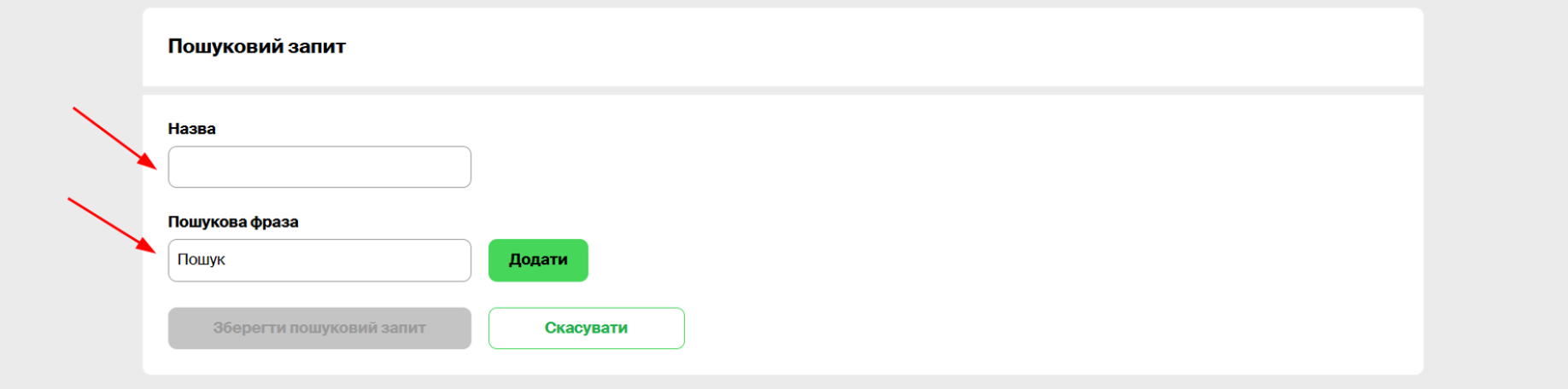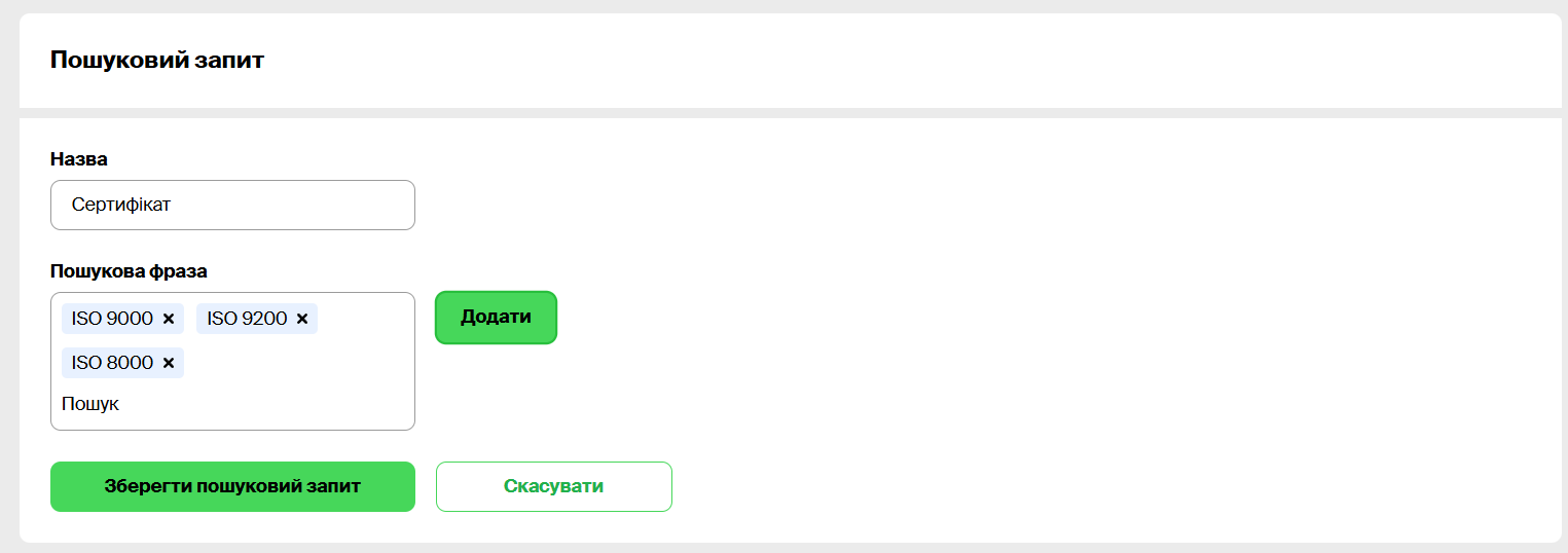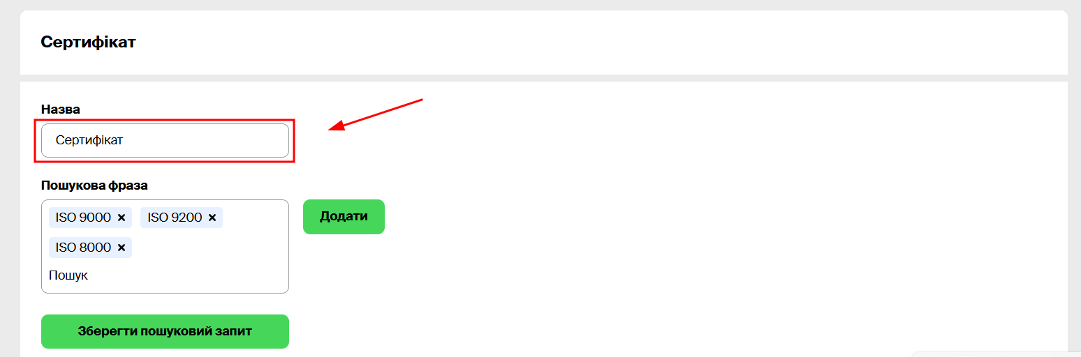 • Пошукова фраза – це слово або фраза, яку система буде шукати в тендерній документації.