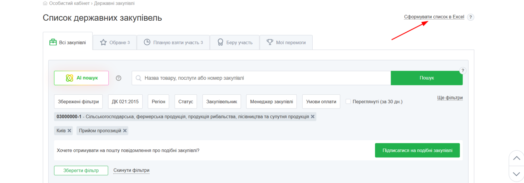 В іншому випадку в назві закупівлі взагалі може бути відсутнє потрібне вам ключове слово або фраза. Це може призвести до того, що потенційно цікава закупівля може пройти повз вашої уваги.