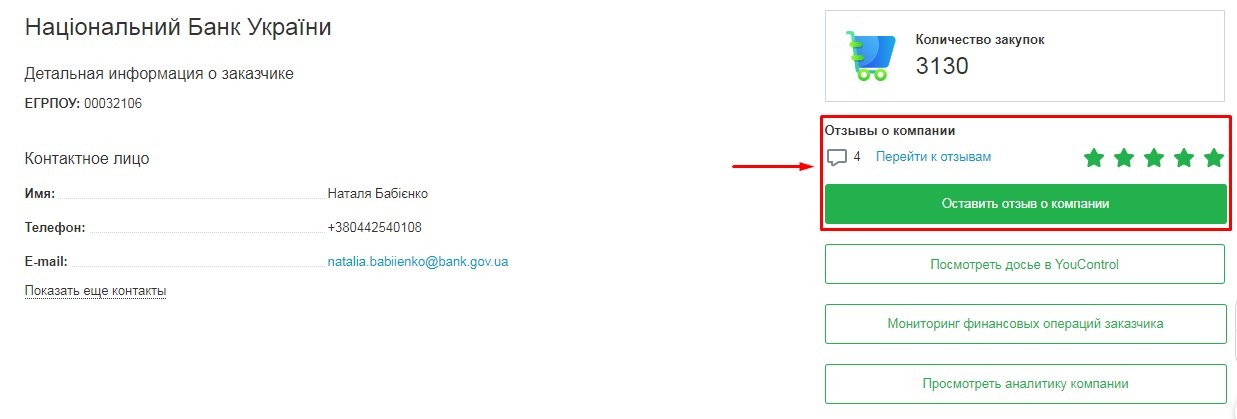 Майданчик Zakupivli.Pro надає ексклюзивну можливість своїм користувачам ставити оцінки і ділитися відгуками про замовників і постачальників, з якими вони співпрацювали раніше.
