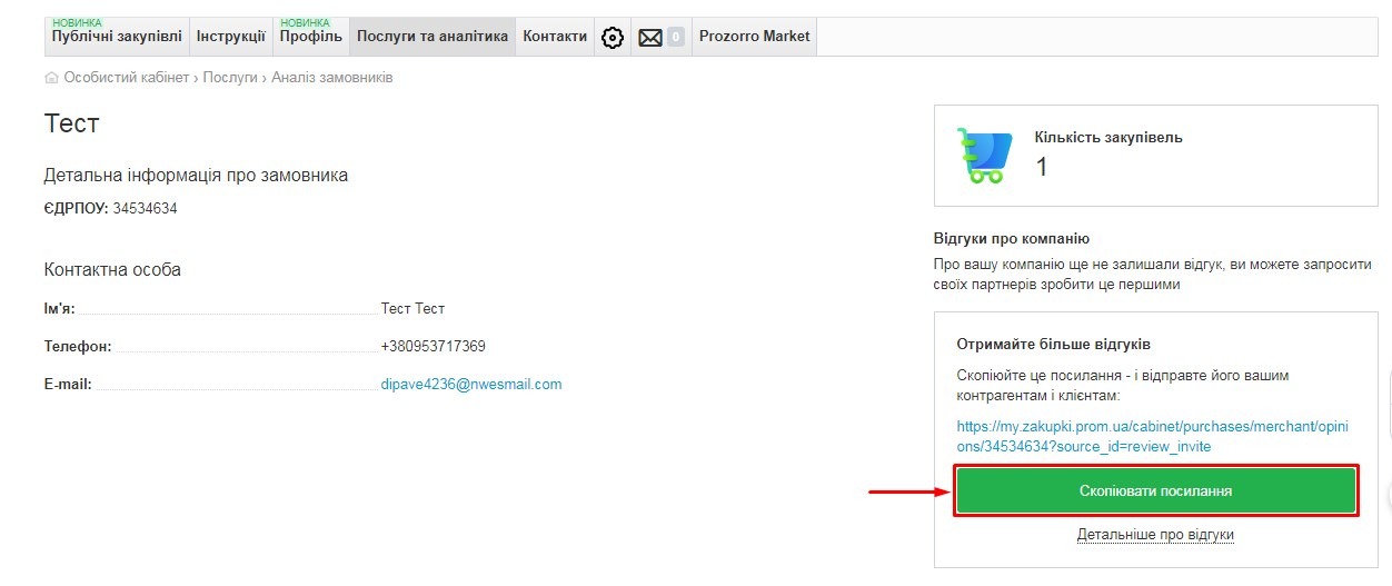 3. Вставте посилання, наприклад, в електронний лист або повідомлення у Viber (чи інший засіб спілкування) та відправте постачальникам, з якими ви вже працювали на нашому майданчику. Попросить їх поставити вам оцінку та залишити чесний відгук.
