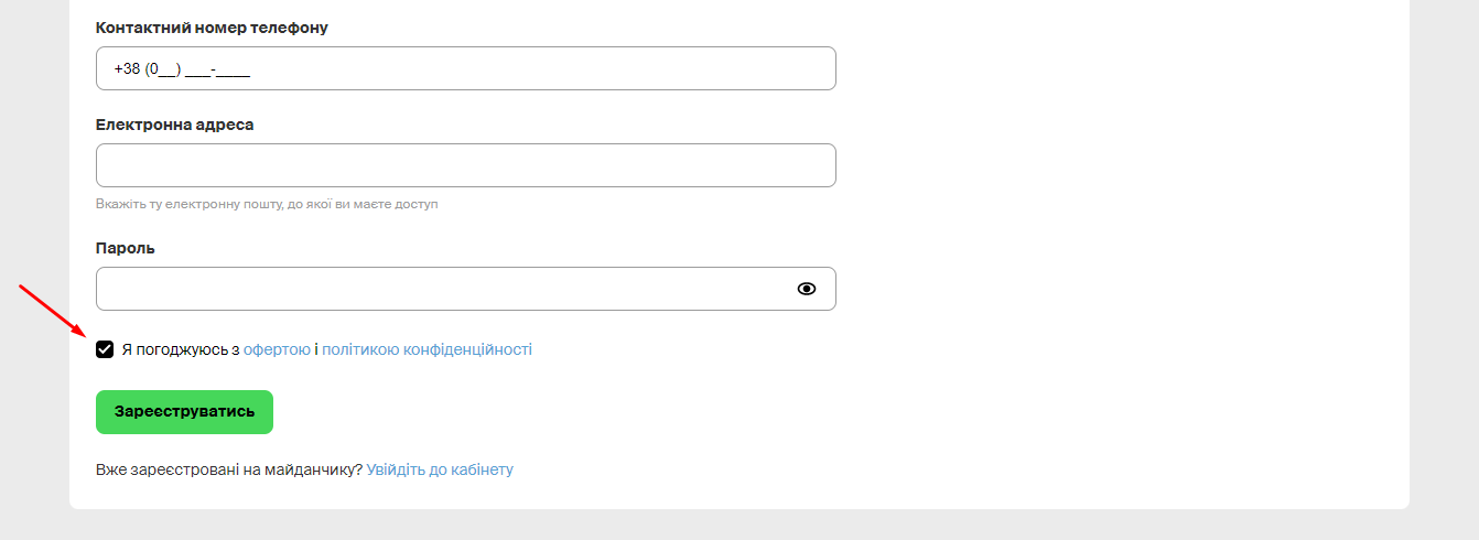 4.  Ознайомтеся з регламентом та політикою конфіденційності та поставте відповідну відмітку.