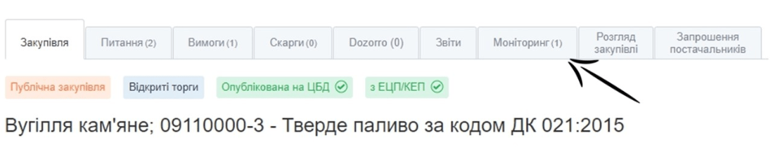 Після початку моніторингу в особистому кабінеті в повідомленнях з’явиться відповідна інформація, а на електронну пошту буде надіслано лист. Також на сторінці закупівлі у вкладці “Моніторинг” з’явиться цифра: