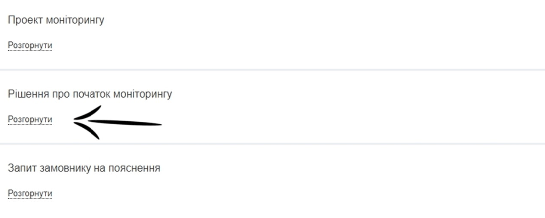 Натиснувши на кнопку “Розгорнути” ви можете ознайомитися з інформацією щодо об’єкта моніторингу та підстав для його проведення.