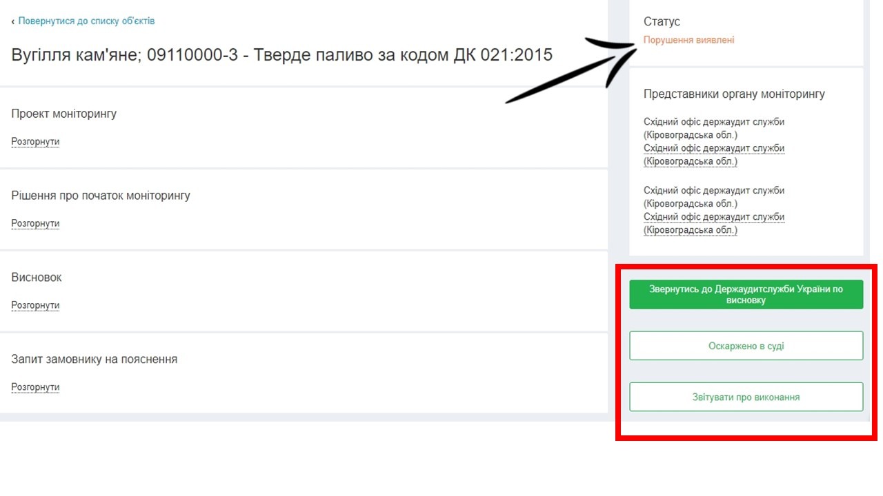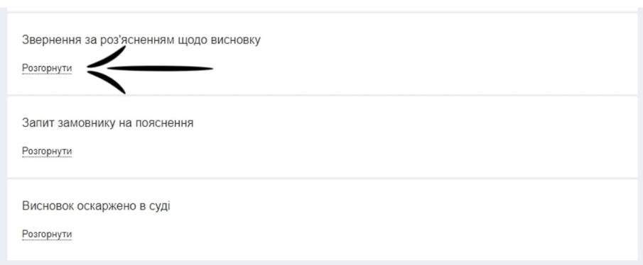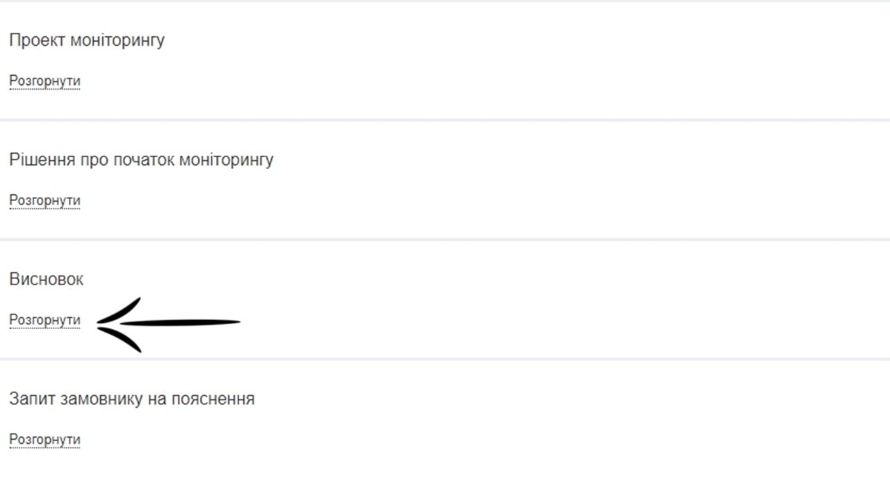 Після публікації на сторінці моніторингу з’являється новий розділ “Висновок”, де, власне, можна з ним ознайомитись:
