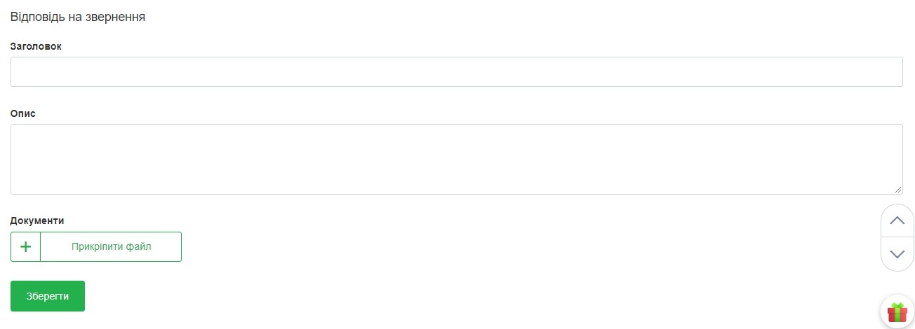 При наданні відповіді потрібно заповнити заголовок і опис, а також, за бажанням, можна завантажити файли. Після внесення інформації її потрібно підписати КЕП.