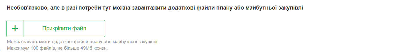 11. Також при публікації плану є можливість додати документи щодо майбутньої закупівлі. Це робити необов’язково.