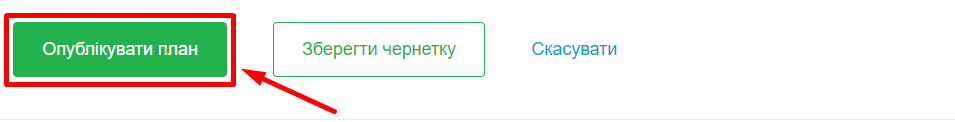 12. Після заповнення електронних полів натисніть “Опублікувати план”. Також план можна зберегти як чернетку або скасувати, натиснувши на відповідні кнопки.